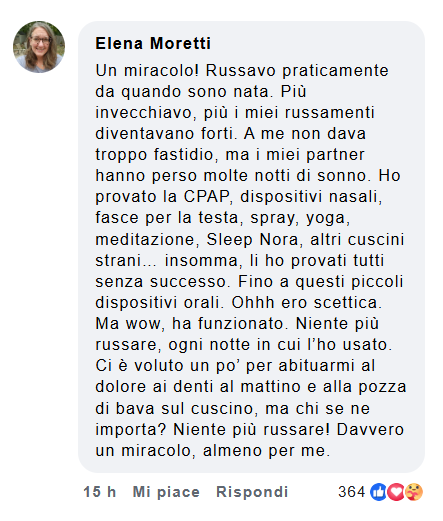 Gli utenti raccontano di aver ritrovato più energia e benessere grazie al sonno rigenerante e alla respirazione facilitata.